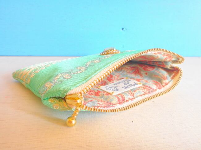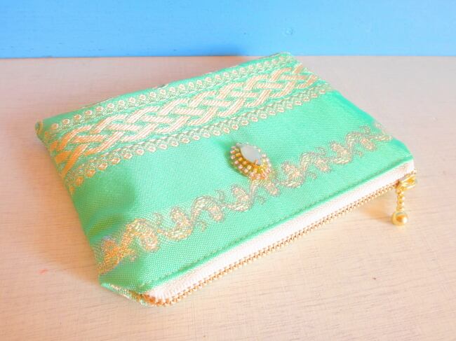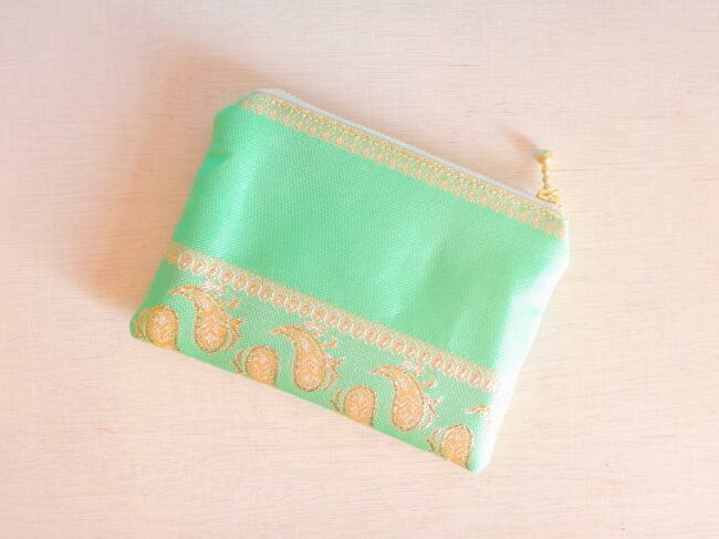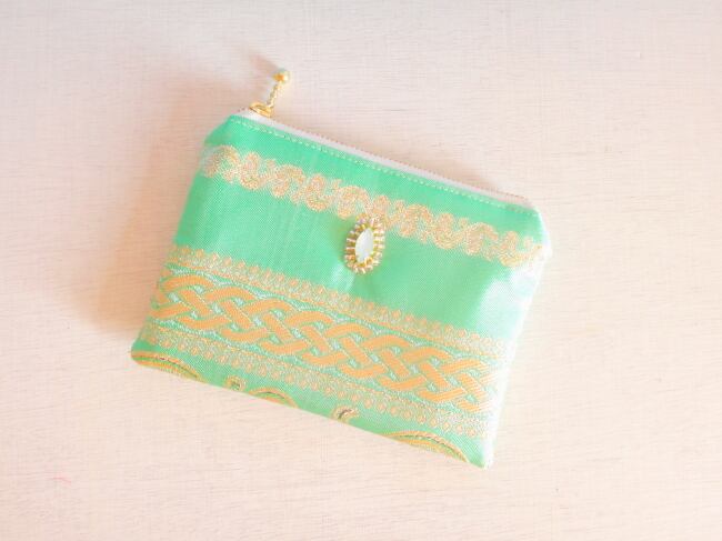 ミントグリーンにゴールドの織模様が華やかな、春色ミニポーチできました。