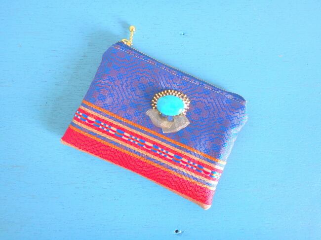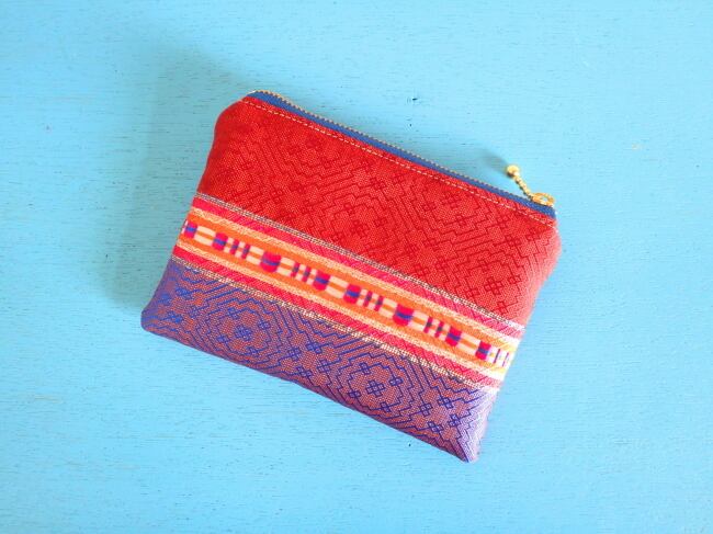 カラフルでインパクトのある、ちょっぴり贅沢なミニポーチです。