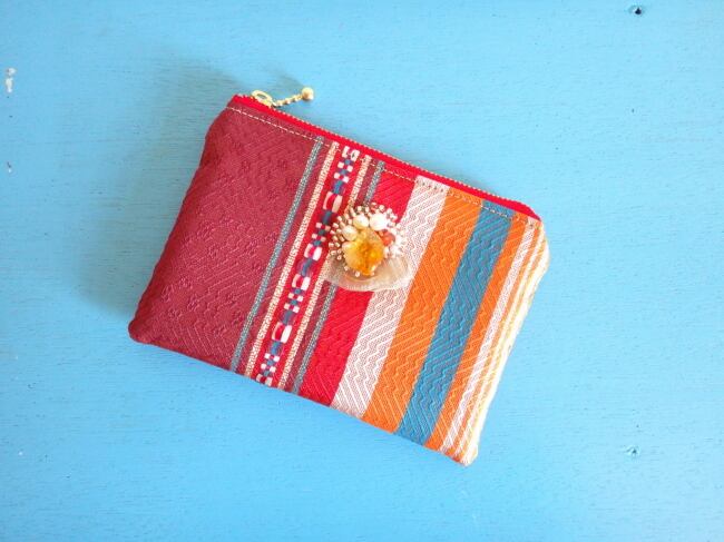 カラフルでインパクトのある、ちょっぴり贅沢なアクセサリー感覚のミニポーチです。