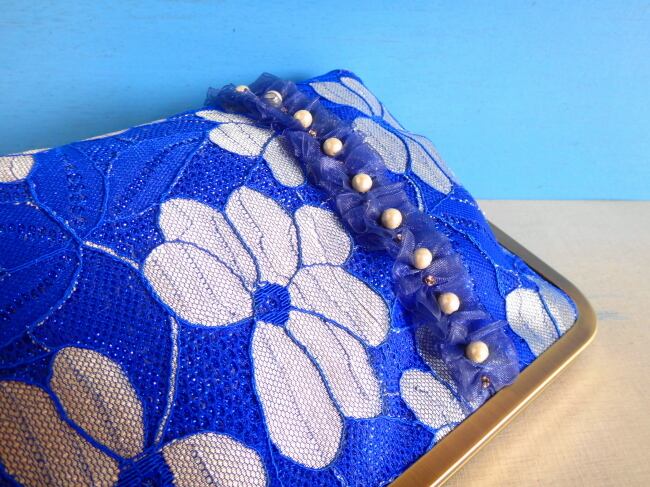 オーガンジーのフリルとコットンパールを合わせて上品で華やかなバッグに仕上げました。