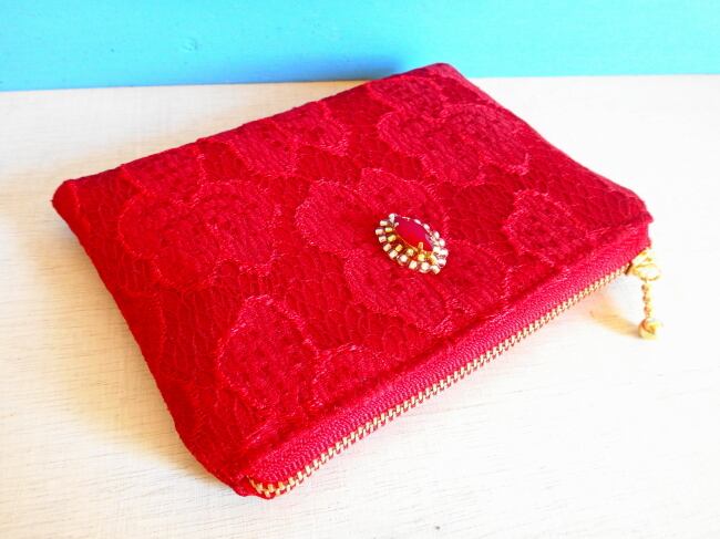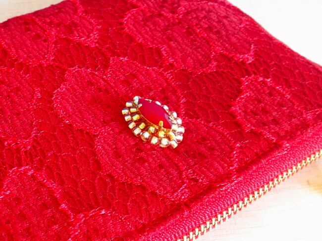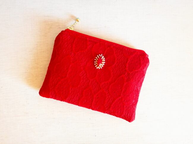 深まる秋を感じさせてくれる、落ち着いた真紅のレース生地に