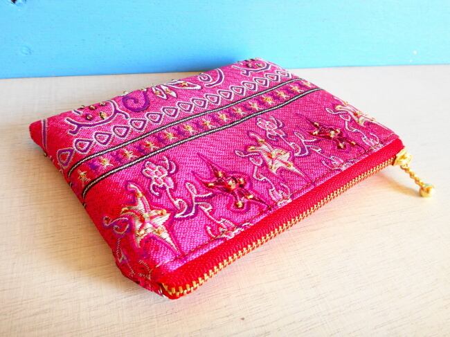 北アフリカ、チュニジアの民族衣装の生地をミニポーチに仕立てました。