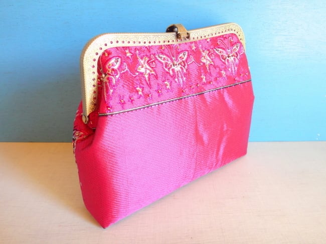 鮮やかなピンクの生地にビーズをあしらって華やかに仕上げました。