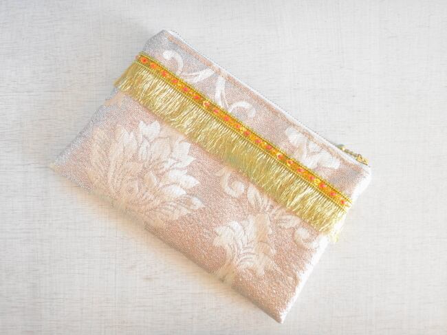 そんな雰囲気の生地に、キラキラフリンジのリボンを