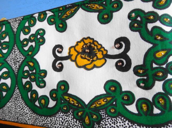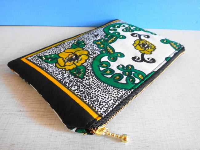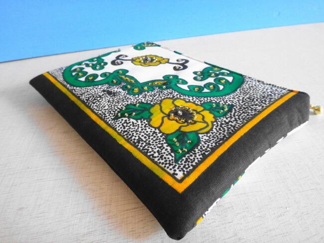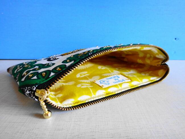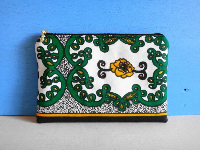アフリカンカンガのぺたんこポーチ(緑のトンネル)
