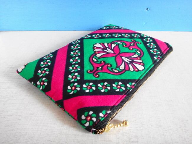 アフリカンカンガのぺたんこポーチ(ピンクガーデン*)