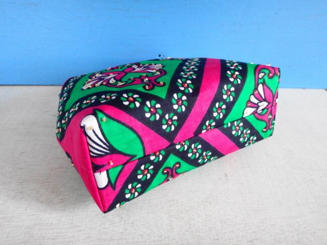 アフリカンカンガのたっぷりがま口(ピンクガーデン)