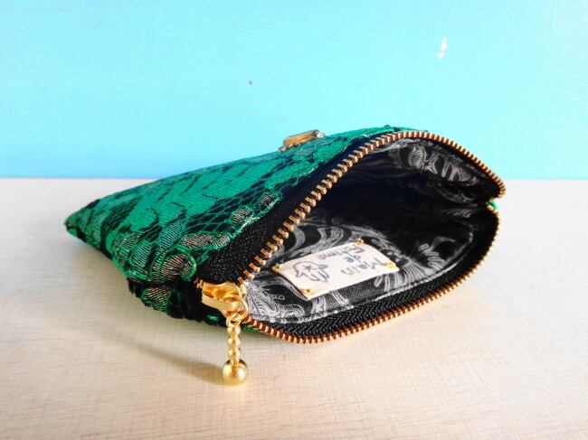 この店から海を越えてやってきたレース生地をポーチに仕立てました。