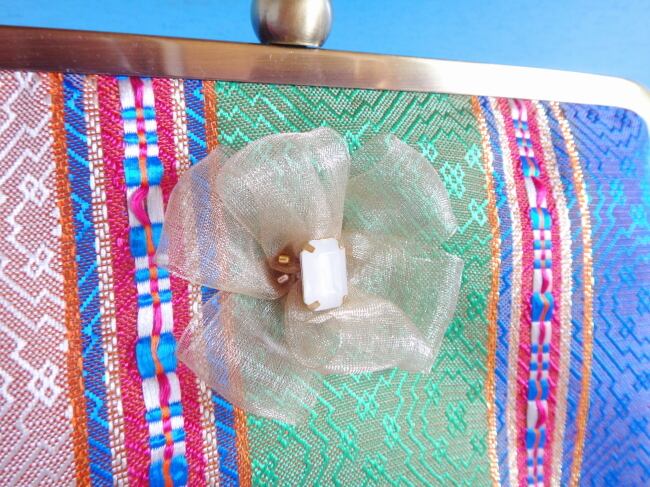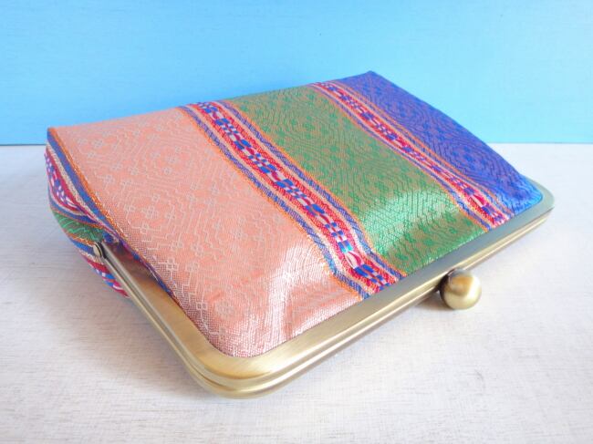 チュニジア布のがま口クラッチバッグ(サハラの夕焼18時37分)
