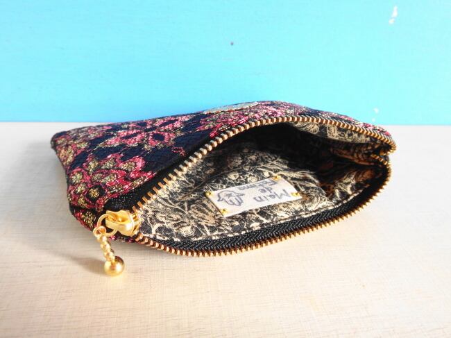 この店から海を越えてやってきたレース生地をポーチに仕立てました。