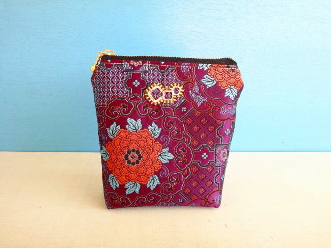 たくさんの美しい素材の中から厳選しました民族衣装の生地を、ポーチに仕立てました。