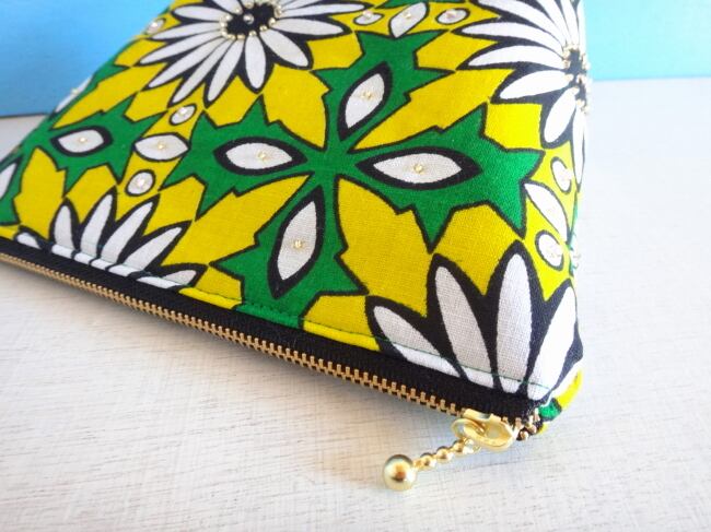 緑の野原に黄色いお花が広がる鮮やかなポーチです。