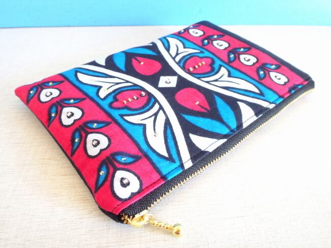 アフリカンカンガのぺたんこポーチ(エキゾチックピンク*)