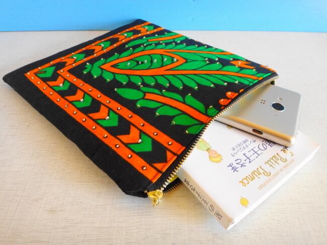 アフリカンカンガの大きなポーチ(ジャングルの花)
