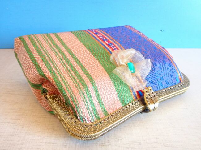 独特の織りと色合いが美しいチュニジアの生地のがま口バッグです.