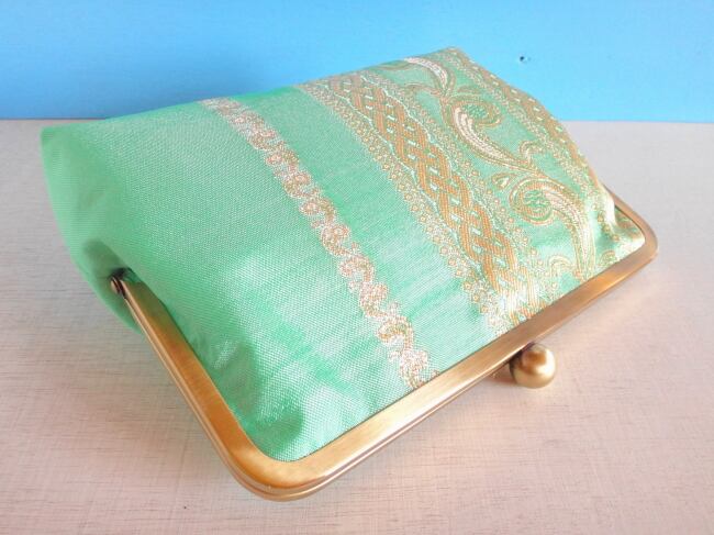 チュニジア布のがま口クラッチバッグ(春風 no.2)