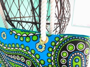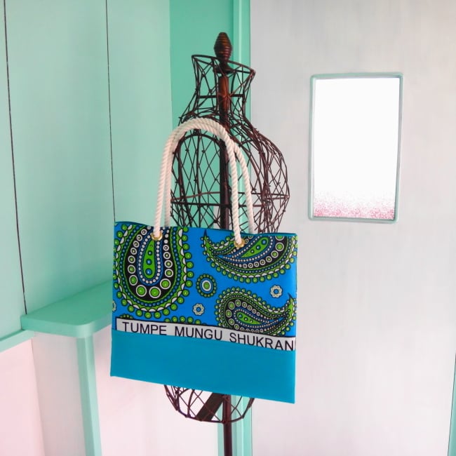 人魚の住む青い海のようなブルーアフリカ布をバッグに仕立てました。