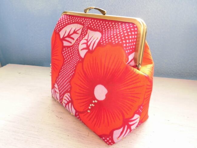 色鮮やかなタンザニアのカンガのがま口ポーチです。