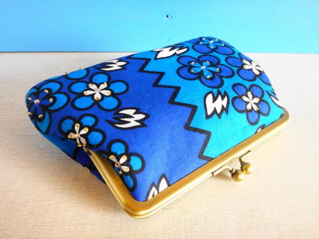 夏の青*アフリカンカンガのがま口(波の上の花*)