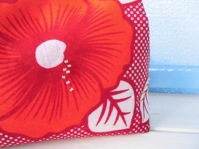色鮮やかなタンザニアのカンガのがま口ポーチです。
