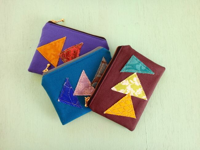 同じく欠片をパッチワークしたミニポーチとのセットです。