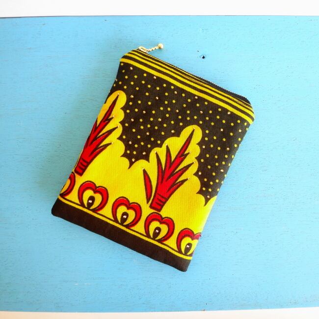 色鮮やかなアフリカの生地にビーズを散りばめた、