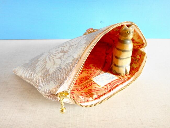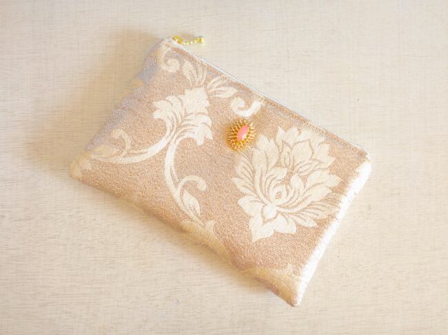 太陽の光を吸い込んだようなシャンパンゴールドのポーチです。
