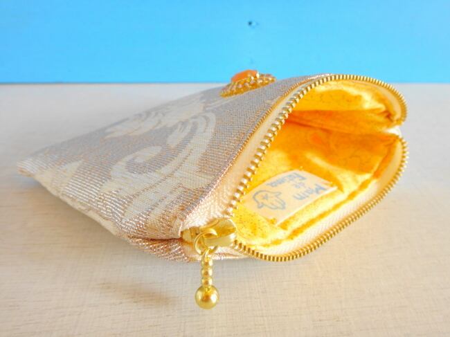 太陽の光を吸い込んだようなシャンパンゴールドのポーチです。