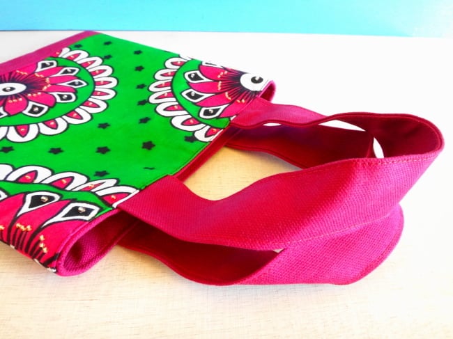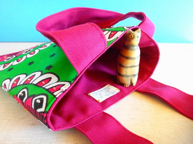 内布と持ち手には厚手の綿オックス生地を使用してしっかりとしています。