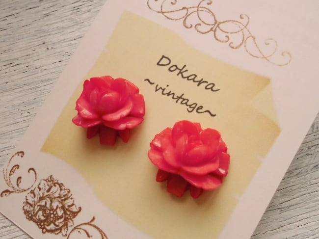 お花のカボションピアス(ローズ)