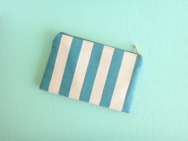 チュニジア布の縞々ぺたんこポーチ(潮風no.3)