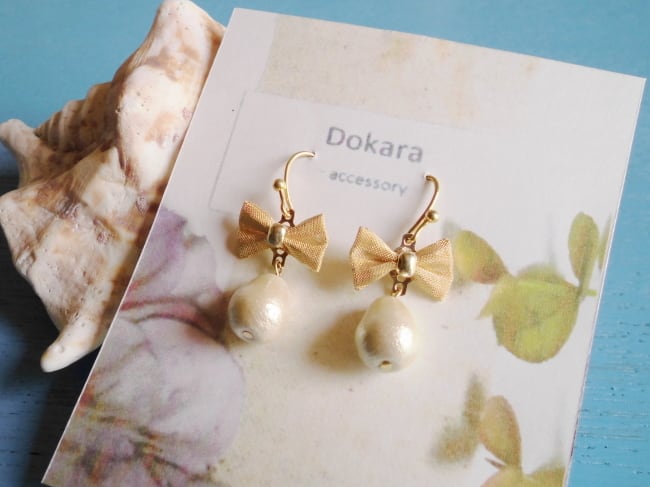 SALE☆コットンパールとリボンのピアス