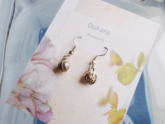 コロンとしたマカロンのような、ちょっと不思議な形のピアスです。