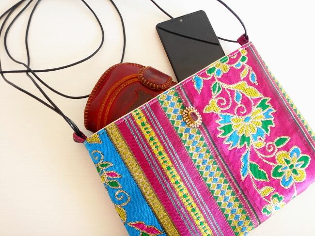 とっても華やかなチュニジア布を使ったサコッシュできました。