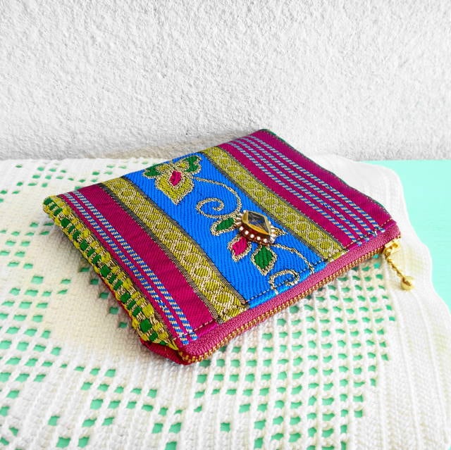 とっても華やかなチュニジア布を使ったミニポーチできました。