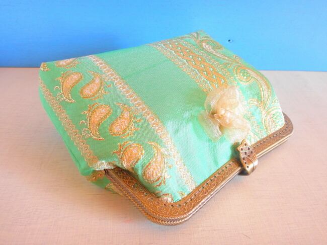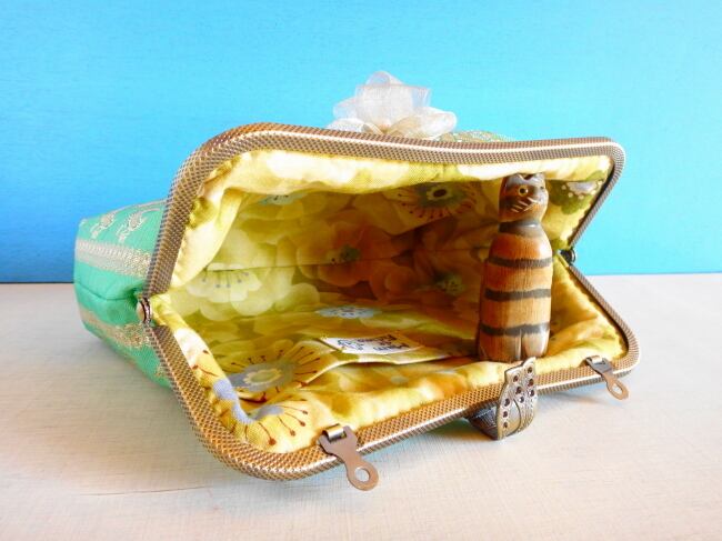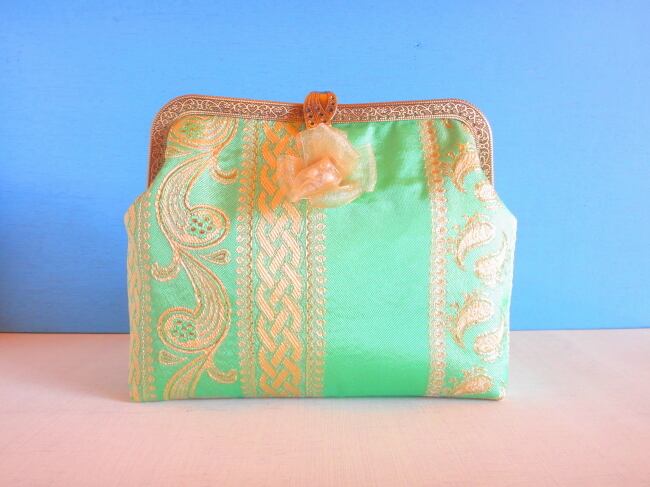 独特の織りと色合いが美しいチュニジアの生地のがま口バッグです.