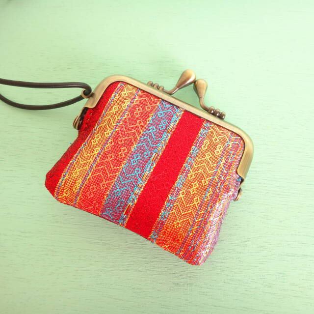 北アフリカ・チュニジアの色鮮やかな民族衣装生地を使ったミニがま口できました。