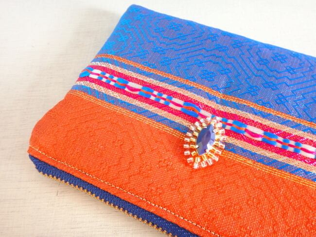 エキゾチックな色彩と柄のチュニジア布のポーチです。