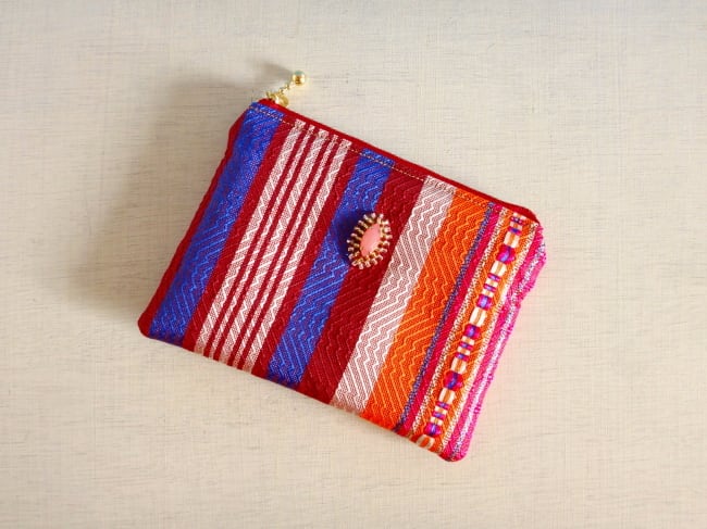 エキゾチックな色彩と柄のチュニジア布のポーチです。