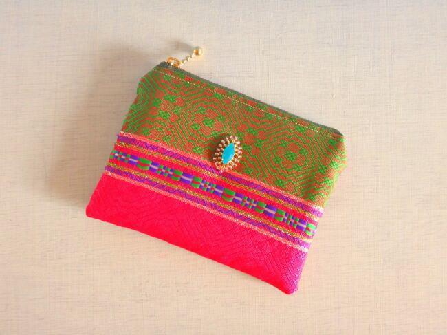 エキゾチックな色彩と柄のチュニジア布のポーチです。