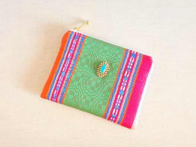 エキゾチックな色彩と柄のチュニジア布のポーチです。