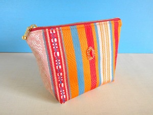 エキゾチックな異国情緒漂う生地に、ビジューを添えた華やかポーチです。