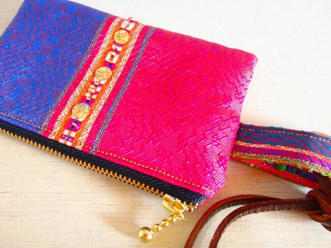チュニジア布のトラベルポーチ*だいじなもの入れ(サハラの夕焼18時36分)