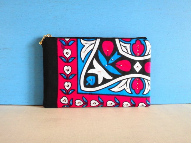 アフリカンカンガのぺたんこポーチ(エキゾチックピンク#)