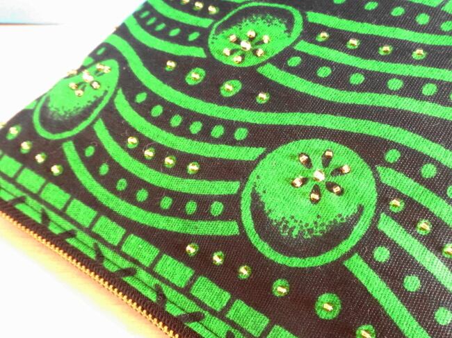 深い緑の森に入り込んだようなアフリカンカンガのポーチです。
