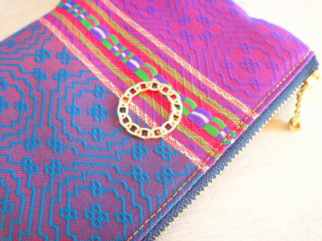 エキゾチックな色彩と柄のチュニジア布のポーチです。
