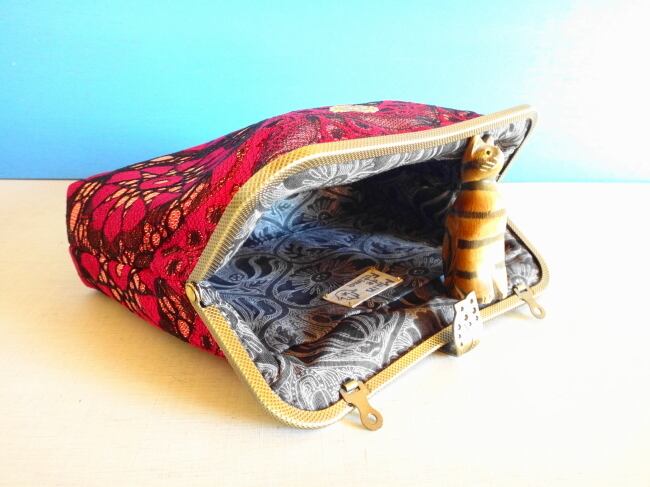口金は縫い付けるタイプですので、中身を入れても外れる心配がありません。
