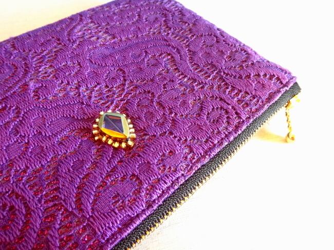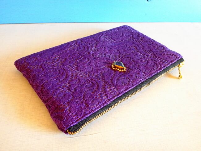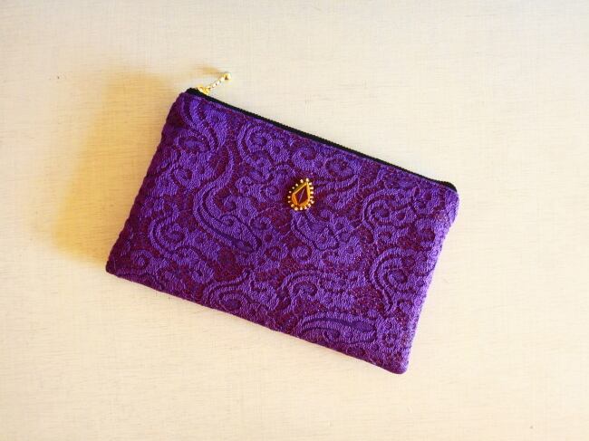 レース模様のぺたんこポーチ(葡萄no.1)