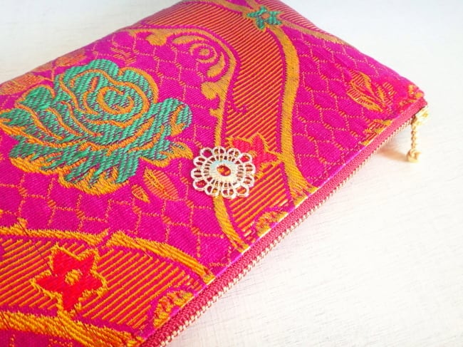 華やか花柄ぺたんこポーチ(アジアの街角no.7)